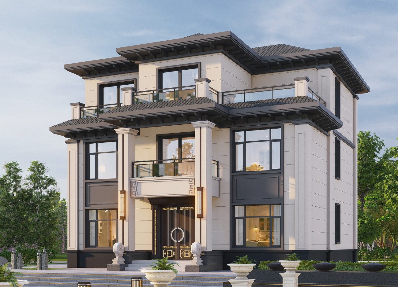 雅江17 三层新中式(10x12米)-【易设计】